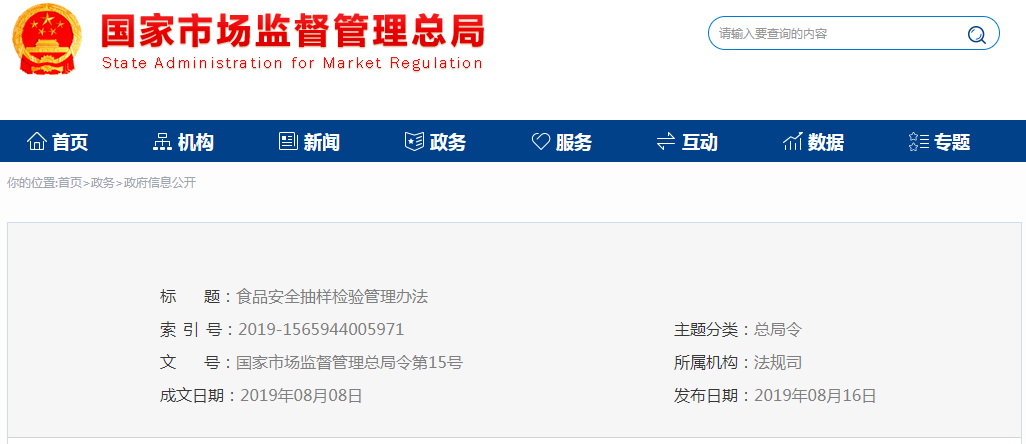 近日,国家市场监督管理总局发布《食品安全抽样检验管理办法》(以下简称《办法》)。《办法》规定,承检机构应当依照有关法律、法规规定取得资质认定后方可从事检验活动。承检机构进行检验,应当尊重科学,恪守职业道德,保证出具的检验数据和结论客观、公正,不得出具虚假检验报告;市场监督管理部门应当对承检机构的抽样检验工作进行监督检查,发现存在检验能力缺陷或者有重大检验质量问题等情形的,应当按照有关规定及时处理。